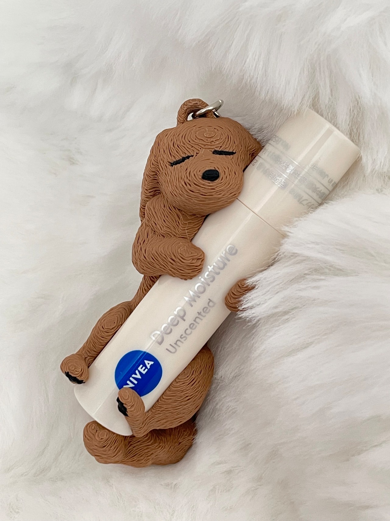 リップクリームを装着すると抱きしめて寝ているように見えます。